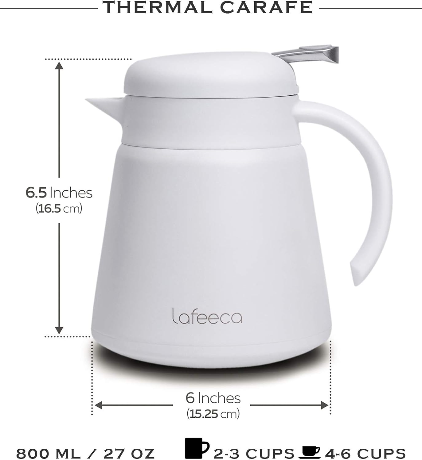 The capacity of the thermal coffee carafe is 64 ounces, and it has stainless steel lafeeca thermal. Stainless steel thermal coffee carafe / double walled vacuum thermos.