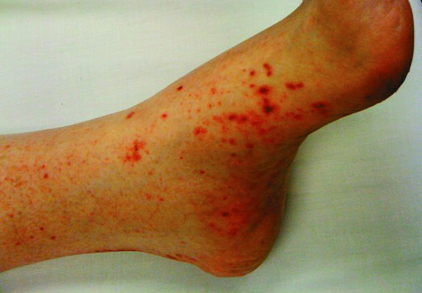 It's a symptom of something else. These skin changes are differentiated from each other according to their size. The bleeding results from unusually low levels of platelets — the cells that help blood clot. Petechiae are tiny red, flat spots that appear on your skin. Purpura is a small hemorrhage into the skin, mucous membrane or serosal surface.