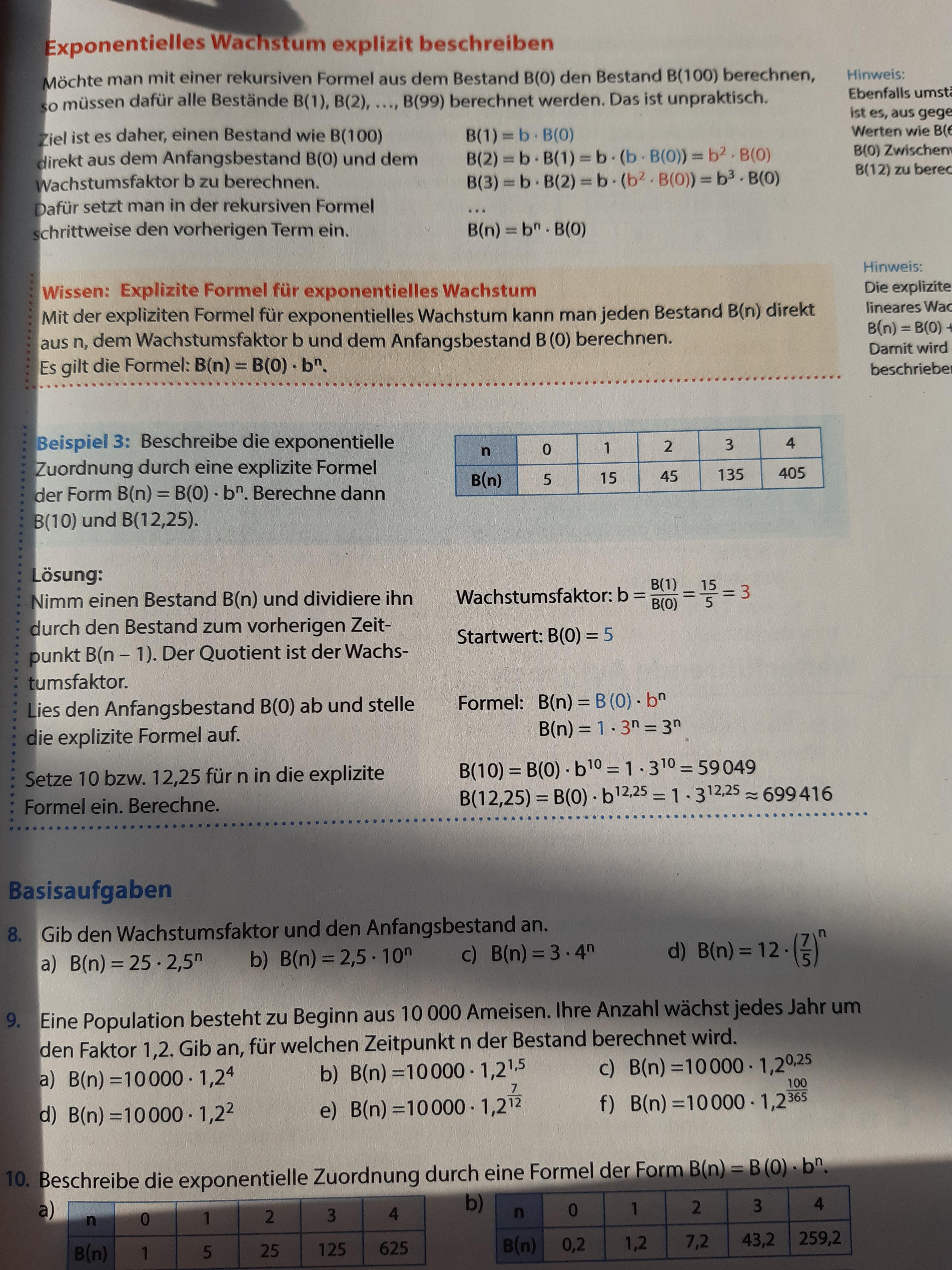 Formel rekursiv explizit exponentielles wachstum.